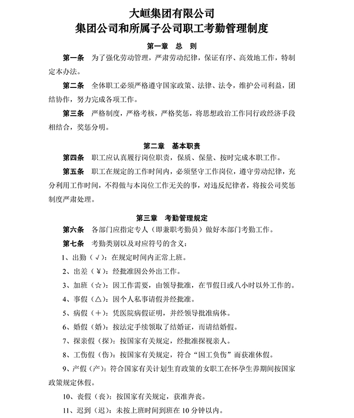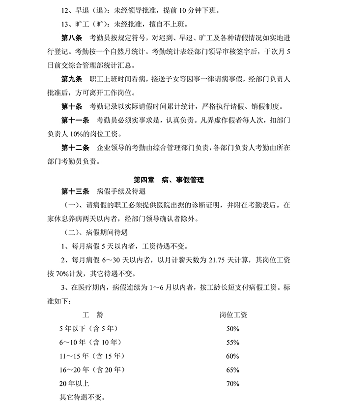 公司職工考勤管理制度
